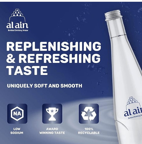 TOUCH OF CLASS: Add a touch of class to your tables with Al Ain Glass Water Bottles, whether you have a dinner, a professional event or a conference, Al Ain Water glass bottle design offers a unique composition making it an irresistible choice