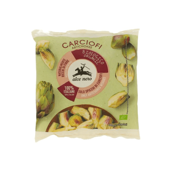 Alce Nero frozen vegetables are organic and Italian and all naturally rich in fibre and protein. Alce Nero frozen artichokes contain only hearts in slices. The paper bag is recyclable.