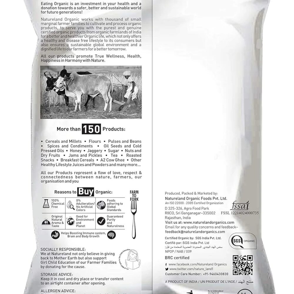 premium, long-grain organic rice known for its strong aroma, slender grains, and fluffy texture when cooked, making it ideal for authentic biryanis and aromatic dishes; it’s grown naturally without pesticides, packed to retain nutrients, and offers health benefits like being high in fiber and low in glycemic index, a good choice for healthy diets.