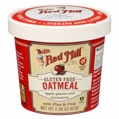 Bob’s Red Mill Gluten Free Oatmeal Apple and Cinnamon is a delicious and healthy breakfast option for those following a gluten-free diet. Each 67g packet contains a blend of gluten-free oats dried apple pieces and warm cinnamon creating a flavorful and comforting meal. This oatmeal is easy to prepare by simply adding hot water and allowing it to steep for a few minutes. It is also high in fiber and protein making it a satisfying way to start the day. This product is perfect for individuals with gluten intolerances or anyone looking to add variety to their breakfast routine.