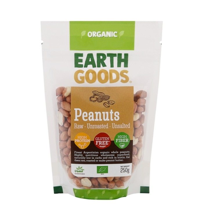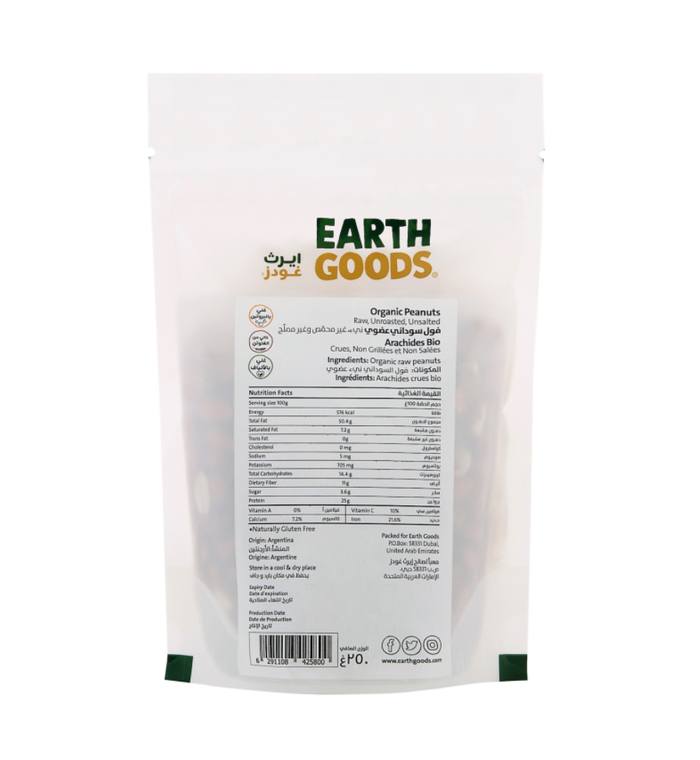 Earth Goods Organic Peanuts 250G is a good source of plant-based protein, niacin, and healthy fats, supporting metabolism and brain function. Enjoy them as a snack, in peanut butter, or in cooking.