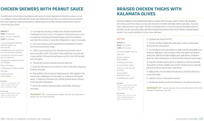 Each recipe uses just 5 main ingredients (excluding basic staples like salt and pepper) and most can be made in under 30 minutes or with only one pot or pan.