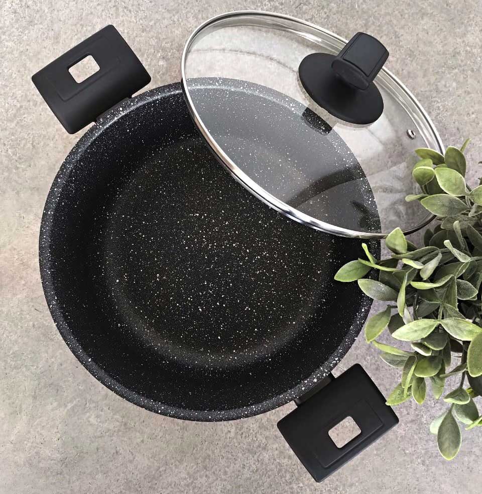 • Extremely resistant to scratches both inside and outside the cookware. Suitable on all heat sources except induction