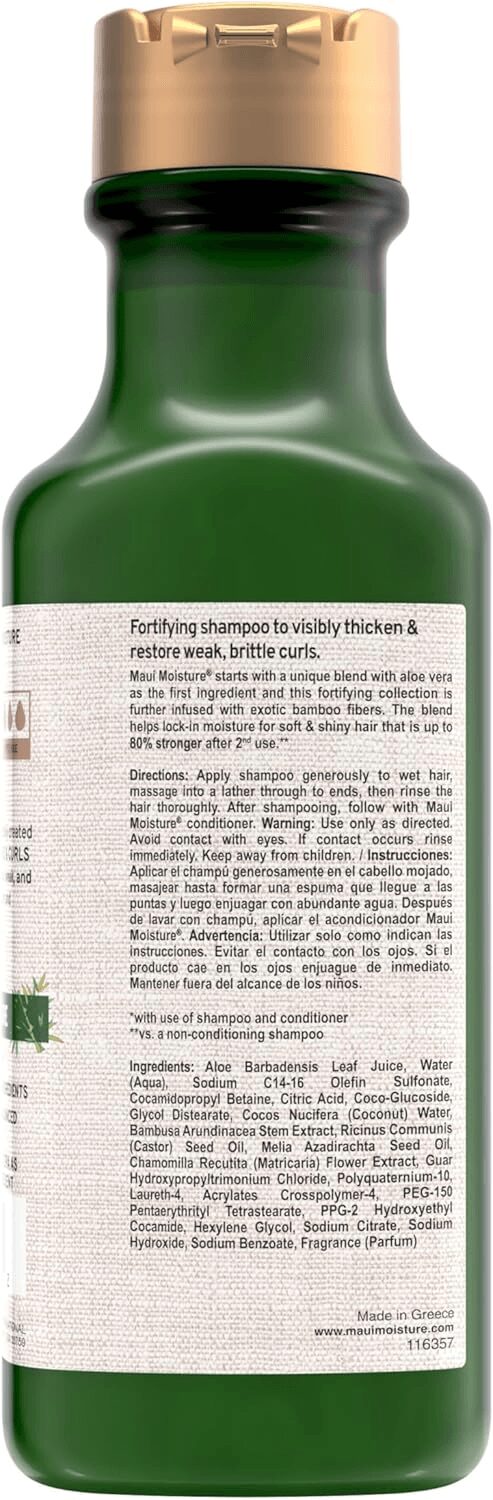 Aloe Barbadensis Leaf Vera, Water (Aqua), Sodium C14-16 Olefin Sulfonate, Cocamidopropyl Betaine, PPG-2 Hydroxyethyl Coco/Isostearamide, Glycol Distearate, Cocos Nucifera (Coconut) Water, Bambusa Arundinacea Stem Extract, Ricinus Communis (Castor) Seed Oil, Melia Azadirachta Seed Oil, Chamomilla Recutita (Matricaria) Flower Extract, Polyquaternium-10, Cocamidopropyl Hydroxysultaine, Sodium Cocoyl Isethionate, PEG-120 Methyl Glucose Dioleate, Guar Hydroxypropyltrimonium Chloride, Methyl Gluceth-10, Tapioca Starch, Sodium Chloride, Propylene Glycol, Diazolidinyl Urea, Iodopropynyl Butylcarbamate, Fragrance (Parfum).