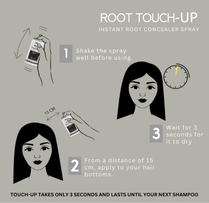NEVA ROOT TOUCH-UP Instant Concealer Spray, Covers Gray Hair Instantly, Fast-Drying Formula, Long-Lasting, Lightweight, Easy to Clean – 75ml (Black