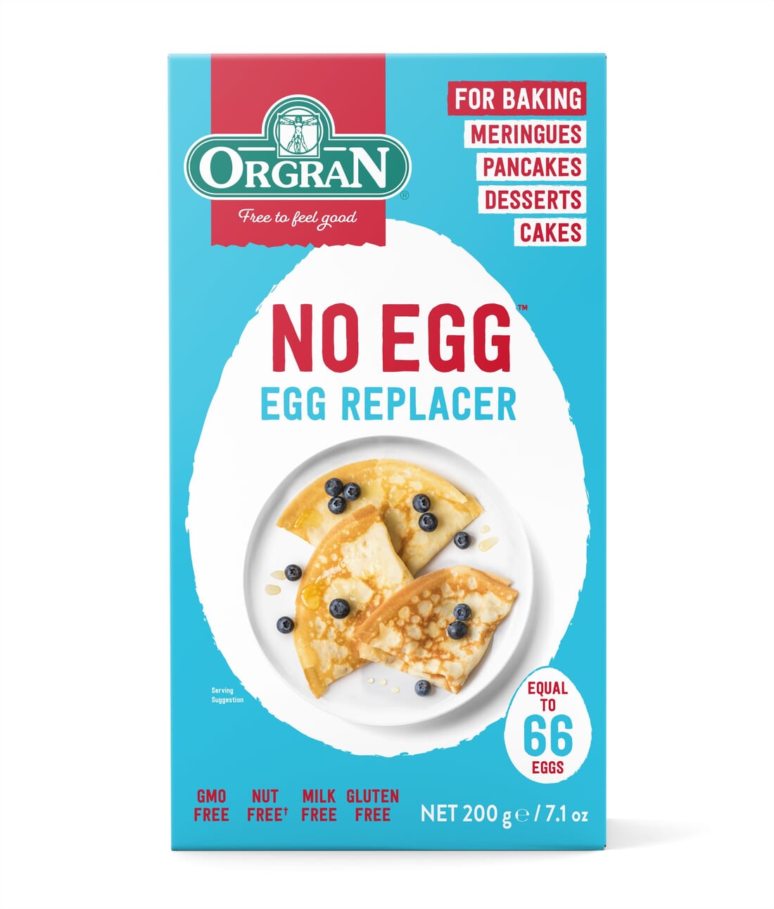 Food Allergies? No problem. ORGRAN No Egg, Egg Replacer lets you create quality cakes and baked goods with a similar texture to those with eggs. With the equivalent of 66 eggs per pack, No Egg is made with all natural ingredients and is free from the 8 most common food allergies in the world, giving you added peace of mind for all your baking needs. Dairy Free, Egg Free, Gluten Free, GMO Free, Kosher, No Added MSG, Nut Free, Soy Free, Tummy Friendly, Vegan, Wheat Free, Yeast Free