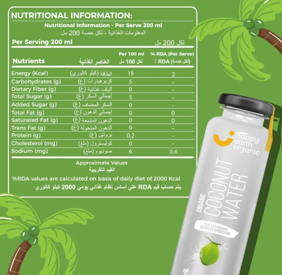 Quench your thirst with Happy Earth Organic Raw Coconut Water, made from pure, certified organic coconuts harvested from sustainable organic farms. This refreshing, naturally hydrating beverage is packed with essential natural electrolytes and vital minerals, making it the perfect choice for replenishing your body. With no additives, preservatives, or sugar, it’s the healthiest option for maintaining proper fluid balance. Enjoy a clean, fresh taste that supports your hydration needs and nourishes your body with every sip. Stay cool, refreshed, and energized with Happy Earth Organic—a truly organic and sugar-free drink that supports your wellness.