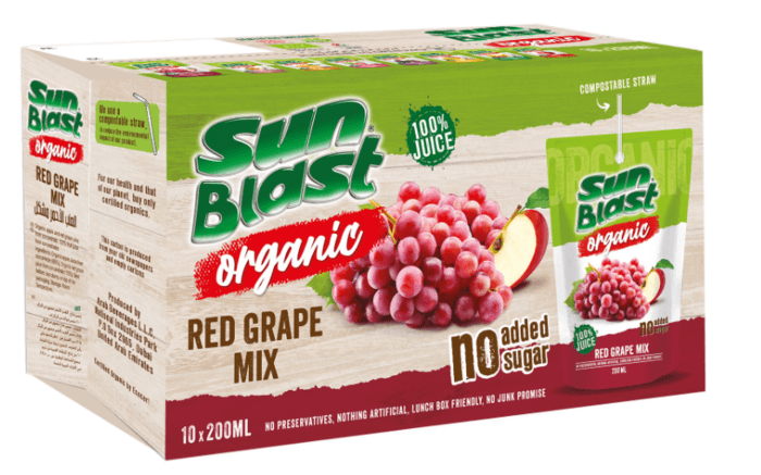 A 100% juice drink made from concentrated apple and red grape juices. Sun Blast juices offer healthy drink options with nothing artificial, ever.