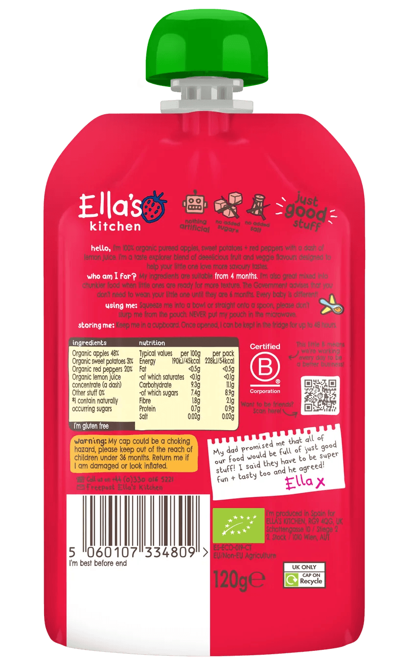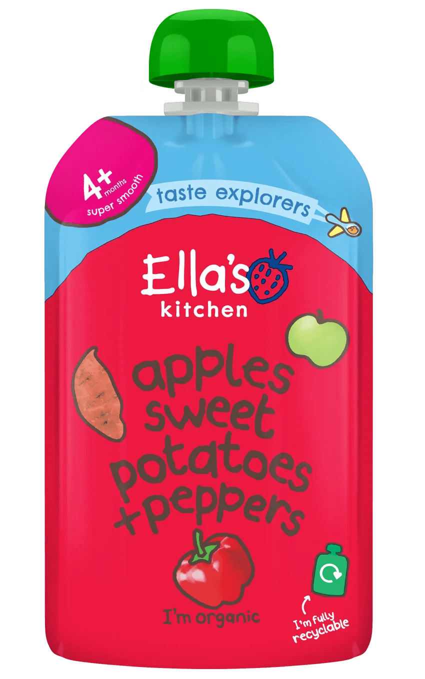 Organic apples, sweet potatoes and peppers baby puree pouch 4+ months 120g