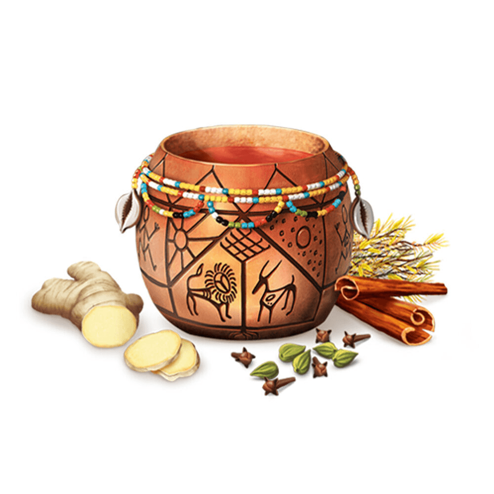 rooibos*, cinnamon*, ginger*, carob*, roasted chicory*, cardamom*, cloves*, black pepper*, cinnamon oil*, ginger oil*, cardamom oil*, vanilla extract*