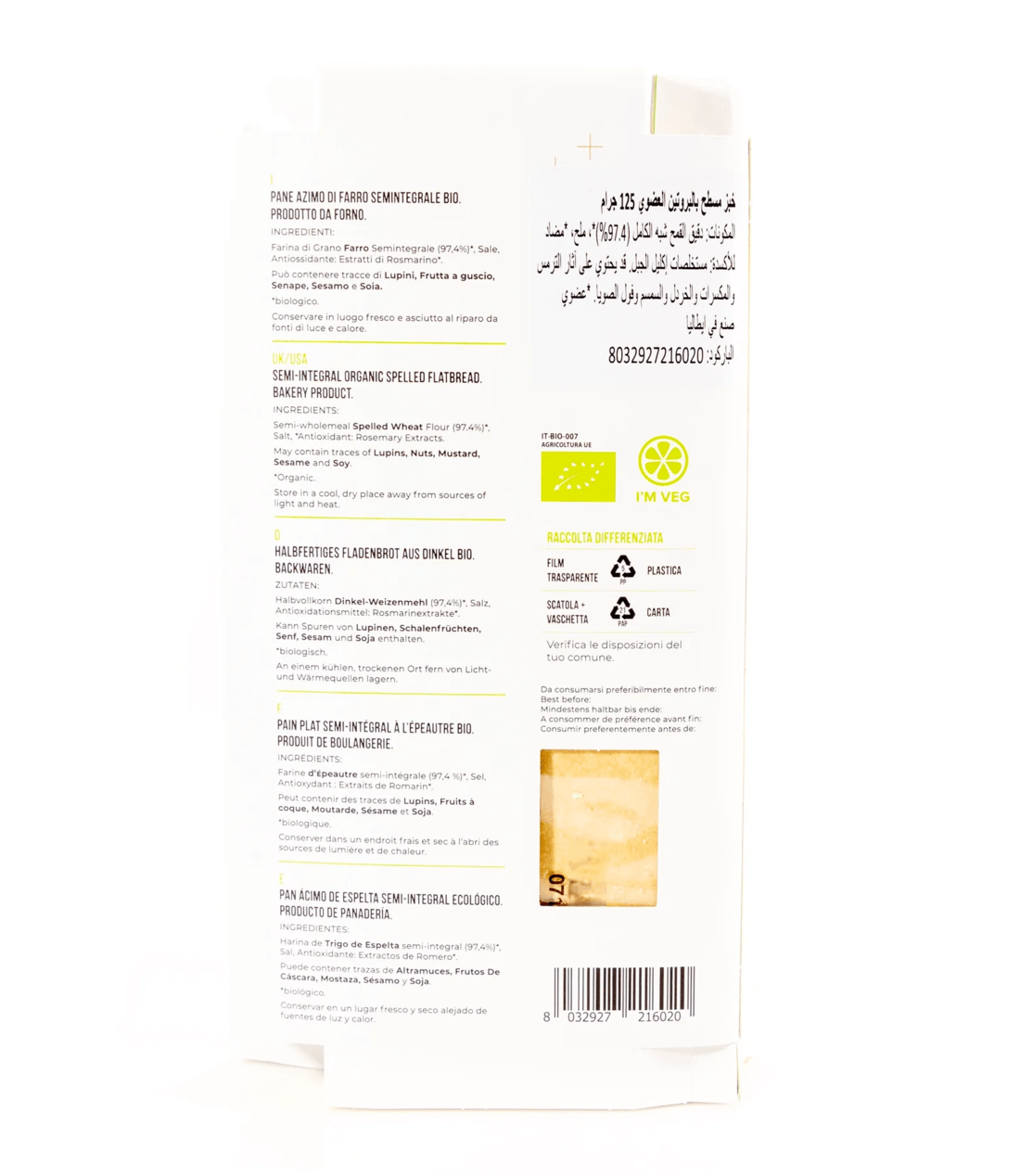 spelt wheat flour* (67,2%), lupine flour* (16,8%), chopped almonds* (5%), chopped goji berries* (3%), extra virgin olive oil*, salt, rosemary extract*(*certified organic ingredient)