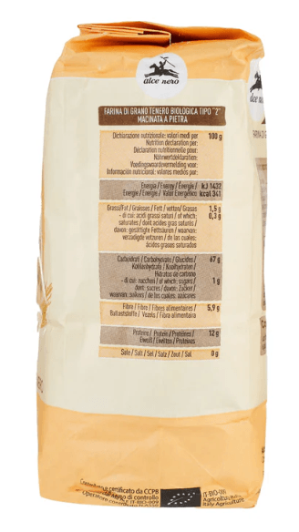 Alce Nero organic soft wheat flour type “0” is produced using only organic wheat grown in Italy of which the grain is ground, deprived only of the external parts. It is recommended for making bread, pizzas, focaccia and wraps.