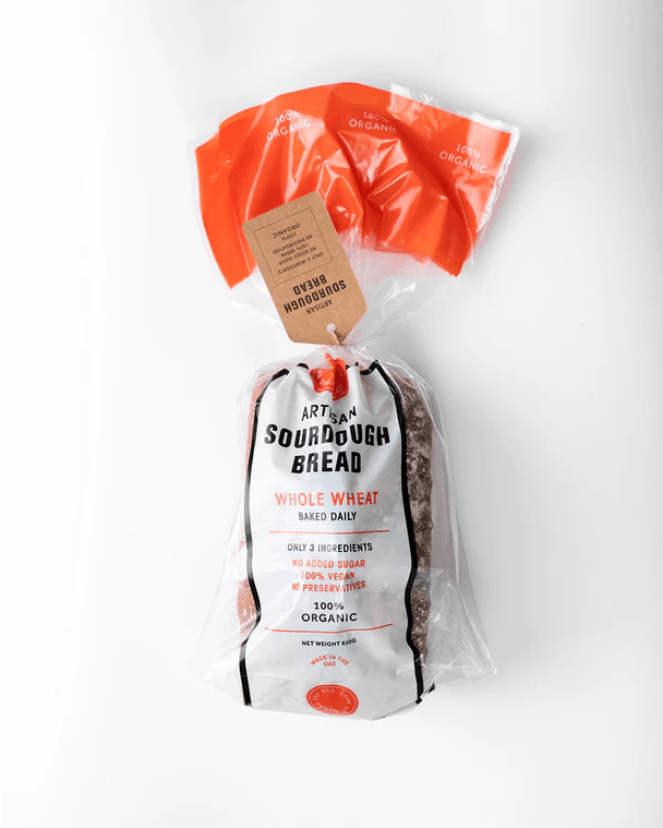 Traditional hearth-baked sourdough bread made with 100% organic, stoneground French wheat. Contains 30% whole wheat flour.