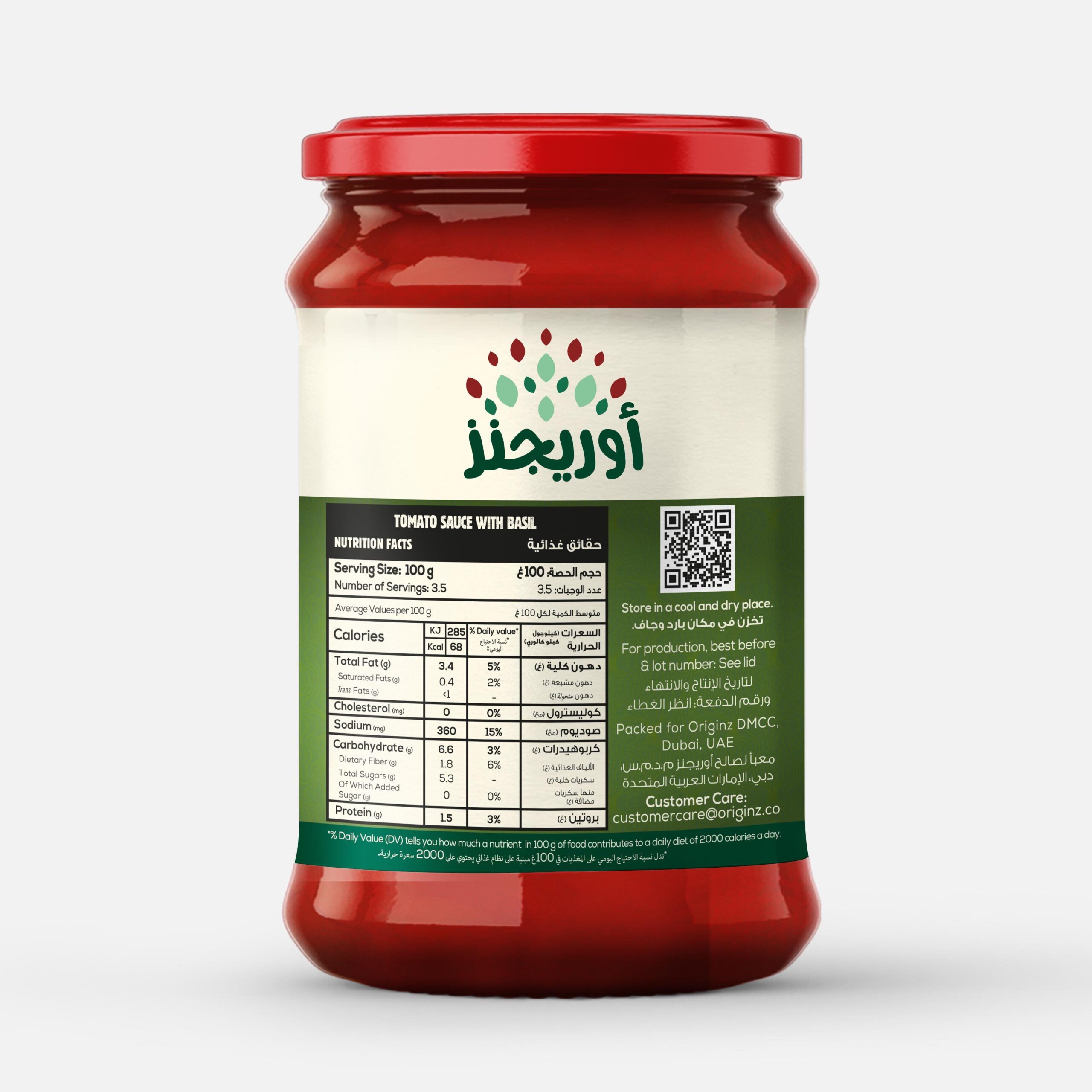 Originz Pasta Sauce Basil Glass Jar