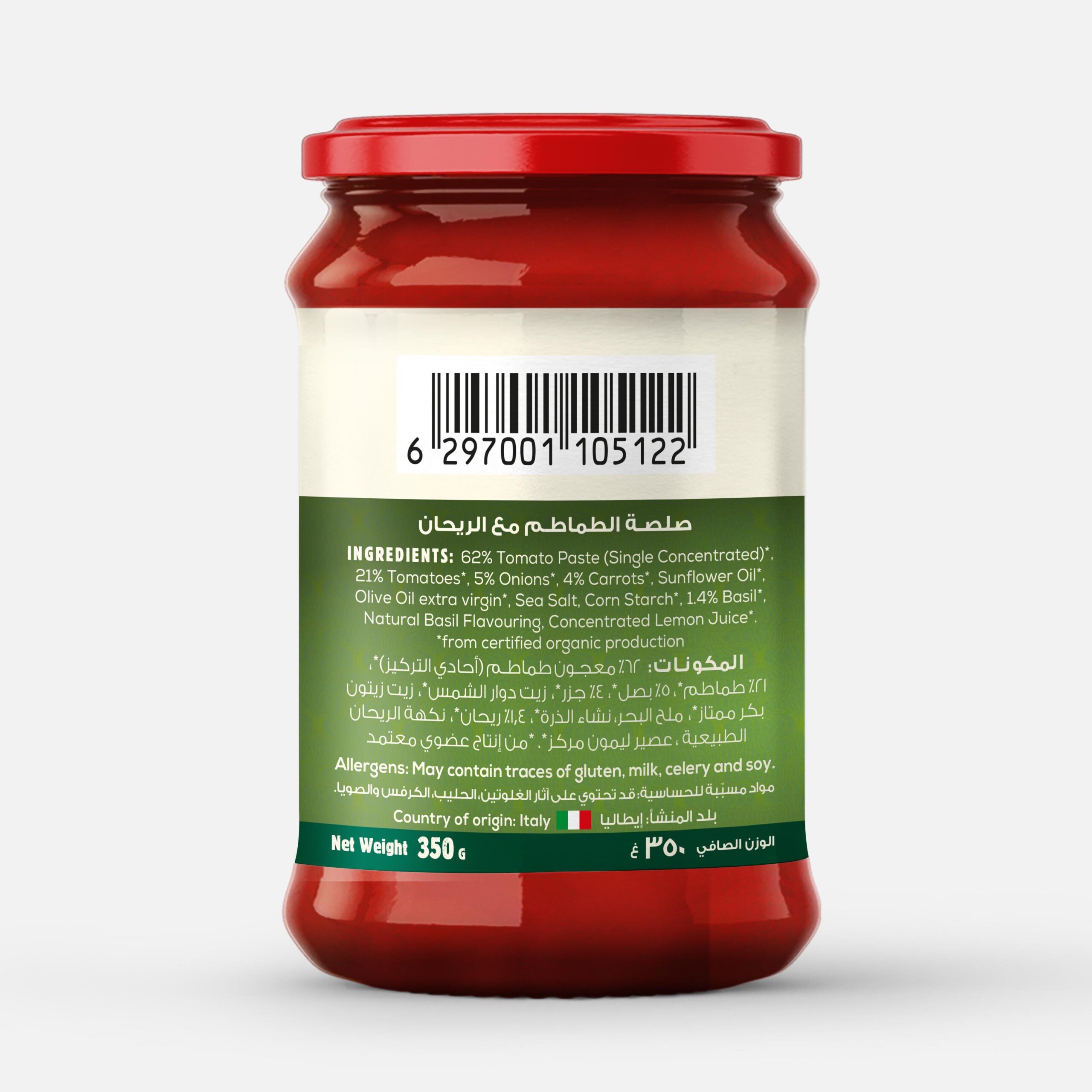 Our Basil sauce contains some of the finest organic ingredients grown in Italy including our sun-ripened tomatoes and fresh basil. The origin and quality of our ingredients is guaranteed by a sophisticated system that helps us follow the product from farm to table. Our care and passion give this recipe a unique homemade flavor and makes it ideal to use for your pasta and pizza dishes.