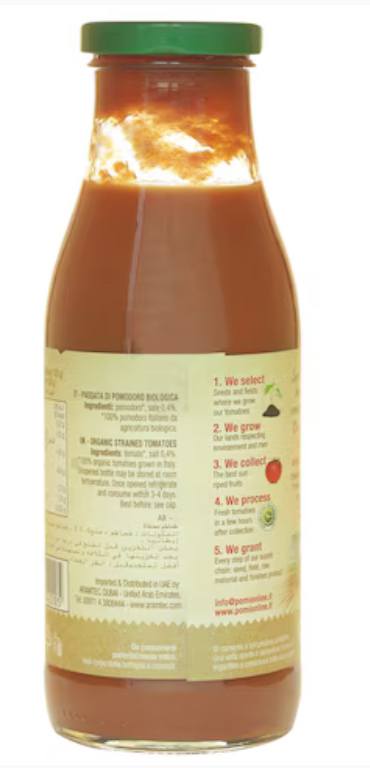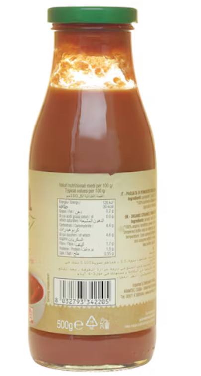 The organic tomato puree is made from high-quality ingredients for an exquisite taste.