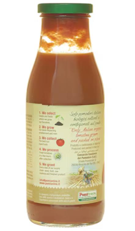Passata sauce made by of organic tomato puree, 100% Italian. Pomì organic passata sauce is a tomato purée produced with genuine tomatoes, fresh and perfectly ripe, processed right after harvesting. The Pomi Organic Tomato Puree is ideal for making delicious meals and snacks at home.