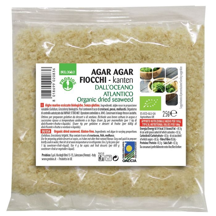 Organic Agar Agar Flakes – a carefully selected assortment of red algae with natural gelling power, perfect for creating delightful aspic jellies and desserts. Crafted from certified organic sources, these flakes offer a plant-based alternative to conventional gelatin. Their unique ability to create firm textures makes them an excellent choice for various culinary applications. Elevate your dessert-making and jelly-crafting endeavors with the authenticity of organic agar agar flakes, a versatile ingredient that combines taste with culinary innovation. Unlock the potential of this natural gelling agent to craft delectable treats that are both flavorful and in line with your organic preferences.