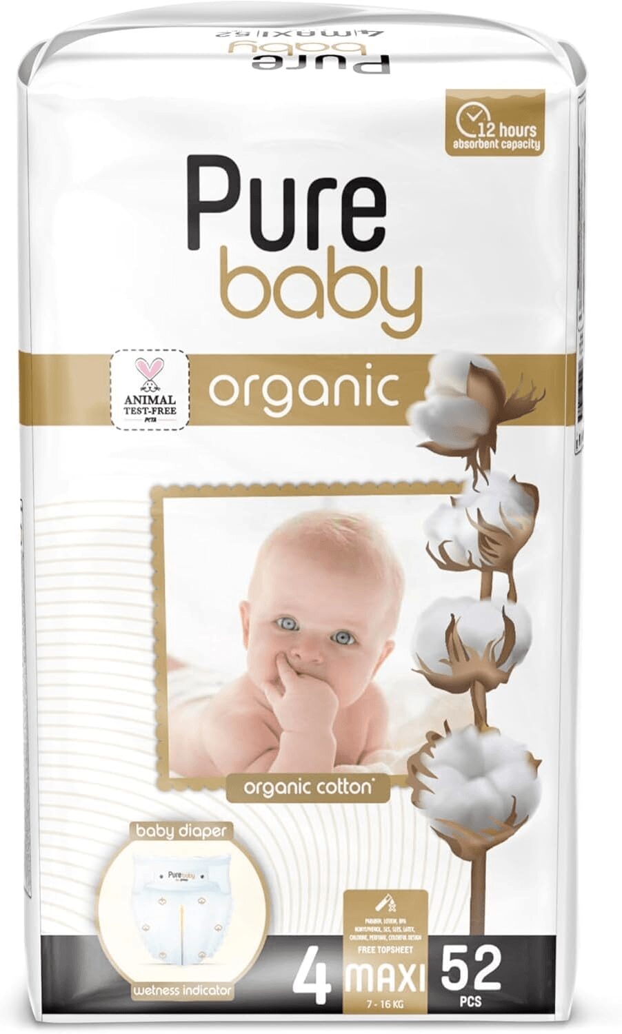PURE BABY – ECO Diapers Size 4 Maxi 52 pieces 7-18kg