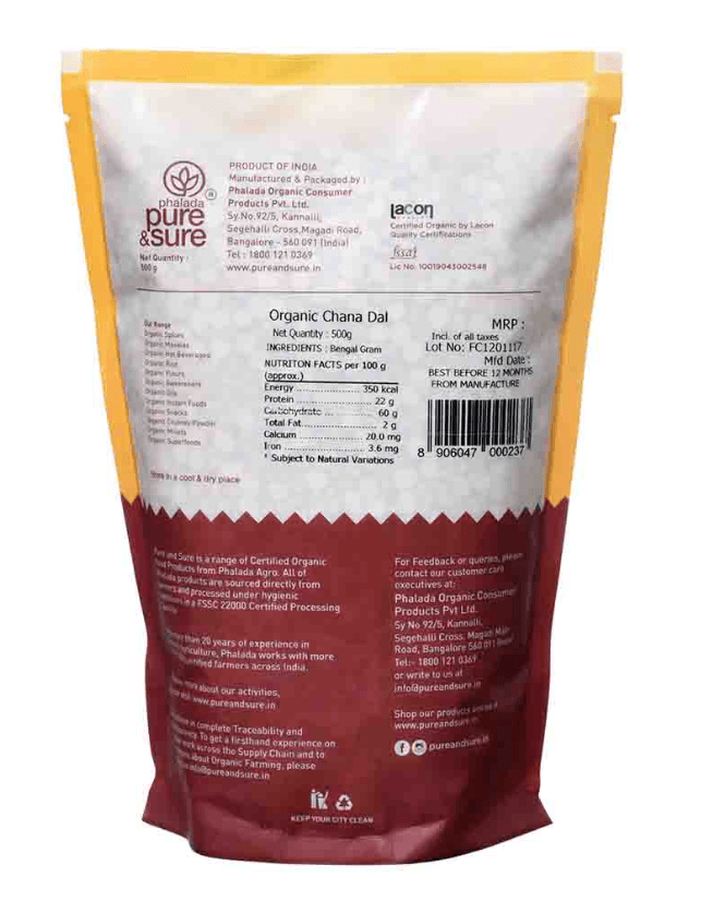 Phalada Pure and Sure Organic Channa Dal is a high-quality product , Provides a hearty, delightful culinary experience,100 percent certified organic channa daal,