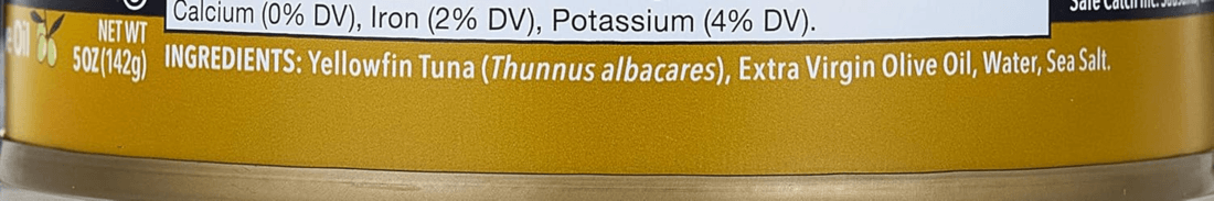 Yellow fin tuna, extra virgin olive oil, sea salt.