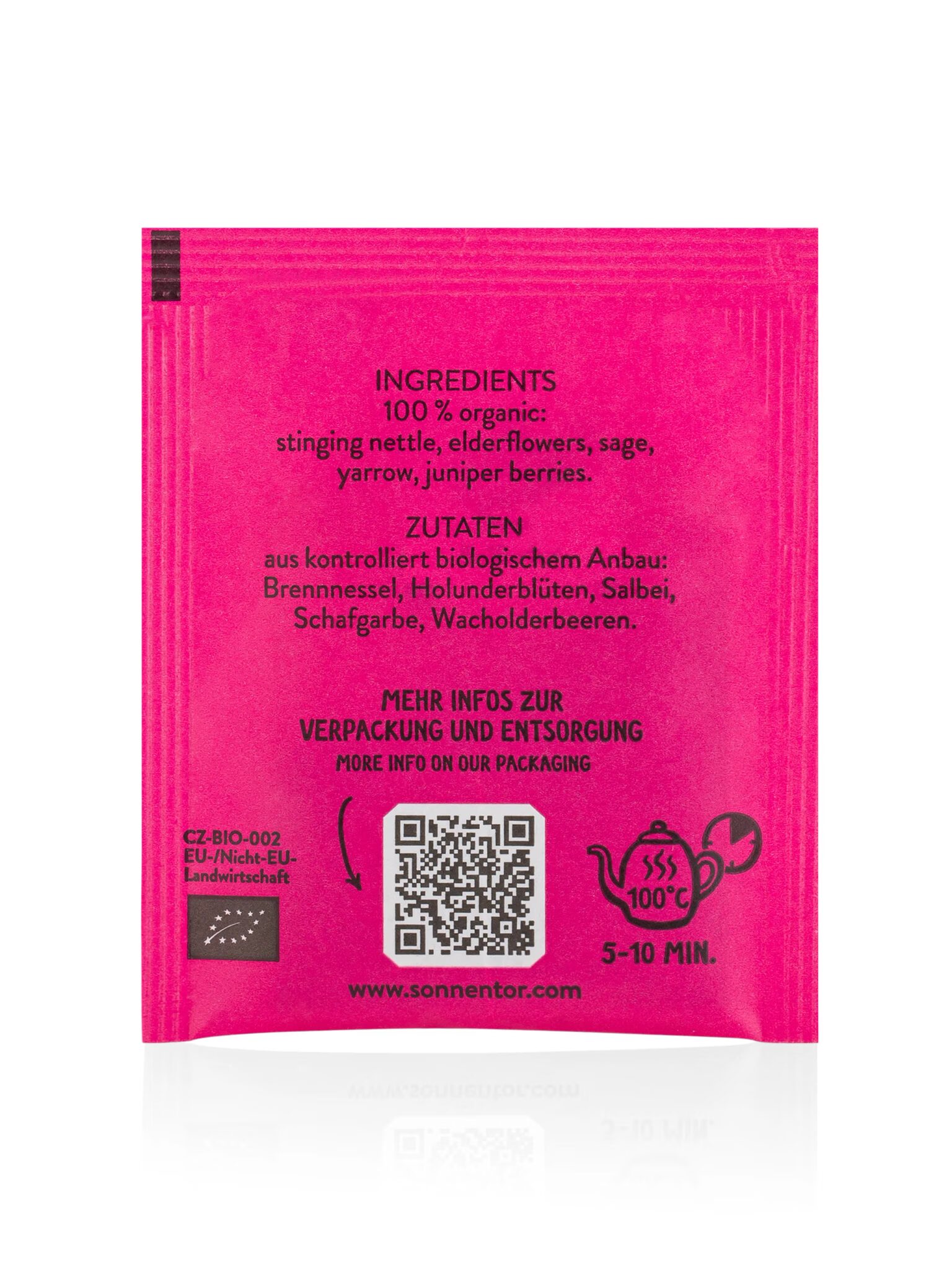 Elderberry blossoms organic, Yarrow organic, Sage organic, Juniper berries organic, Stinging nettle organic. _Vegan, vegetarian, without addition of salt.