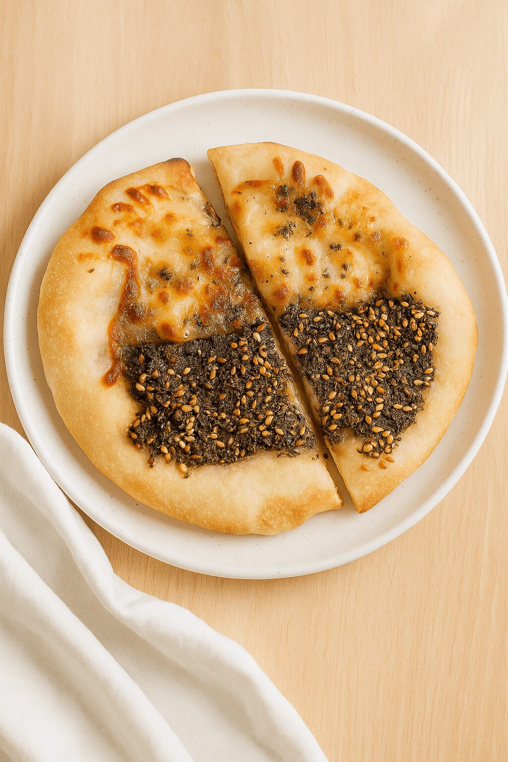 Sourdough-based, organic mozzarella, authentic zaatar blend, ready-to-eat.