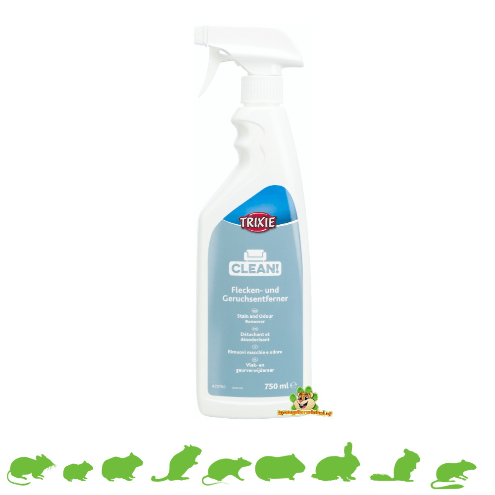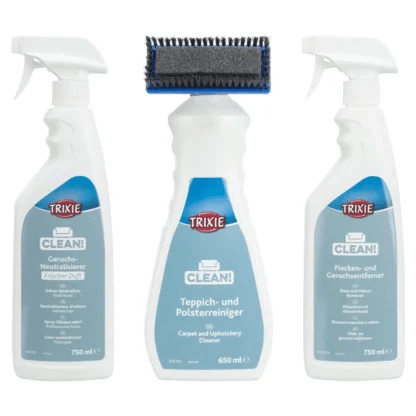 The Trixie Stain & Odour Remover for Smooth Surfaces effectively removes stains and odors from plastic, tiles, glass, and varnished wood.
